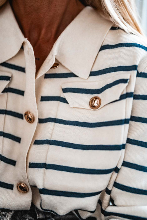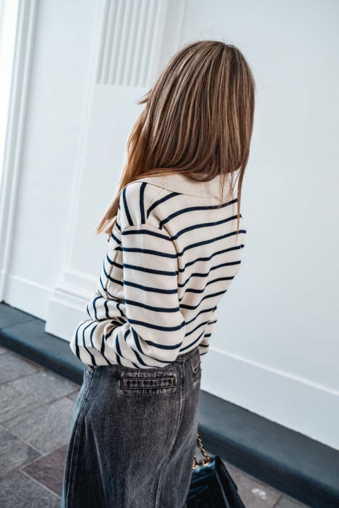 - Rayures tissées marine et écru d’une élégance intemporelle