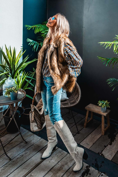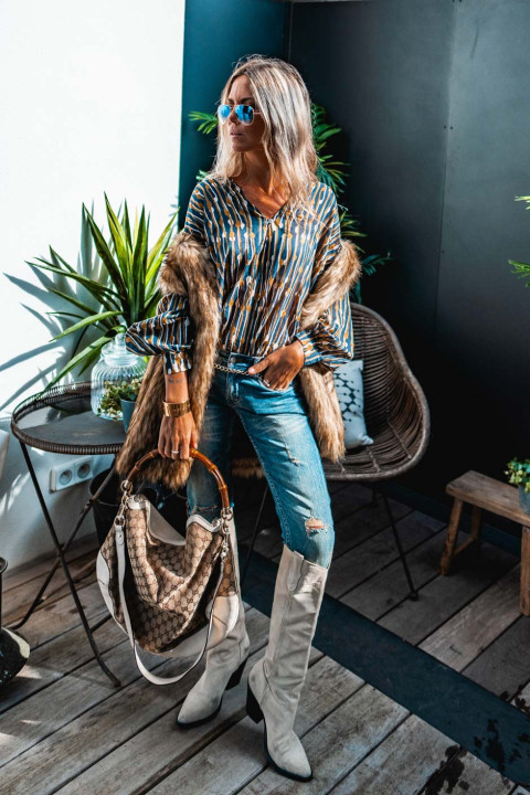 Notre mannequin porte une taille unique pour son S habituel et mesure 170 cm