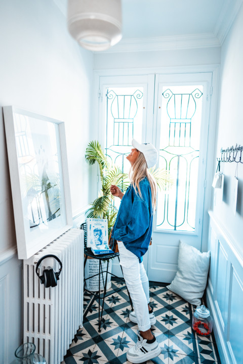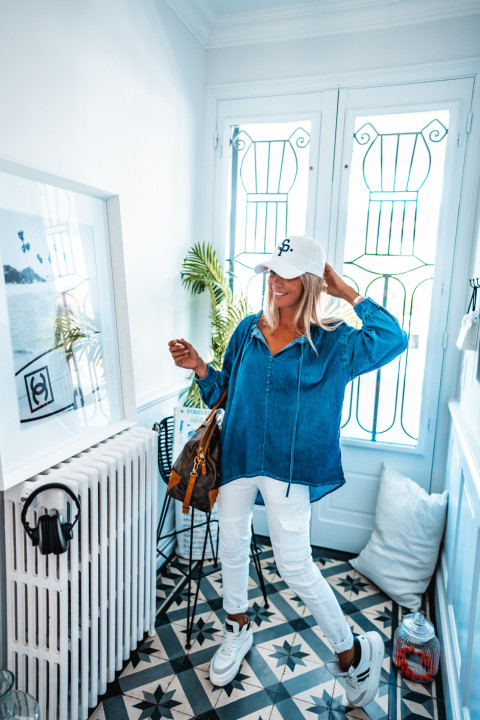Notre mannequin porte une taille unique pour son XS / S habituel et mesure 170 cm
