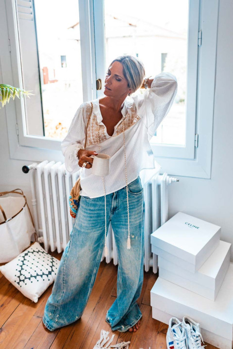 Notre mannequin porte une taille 1 pour son XS / S habituel et mesure 170 cm
