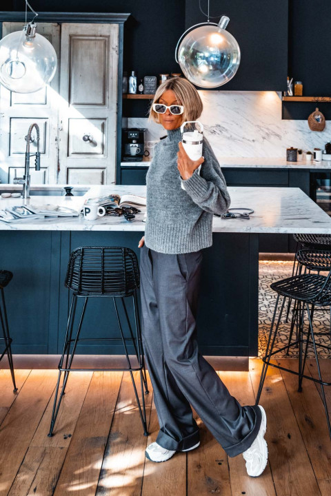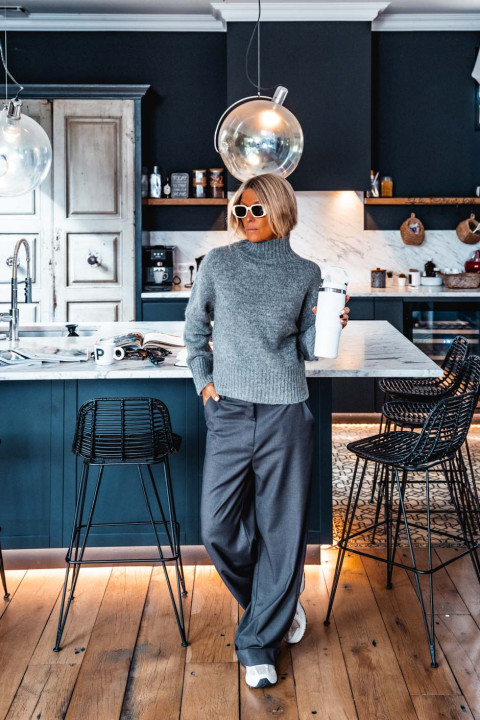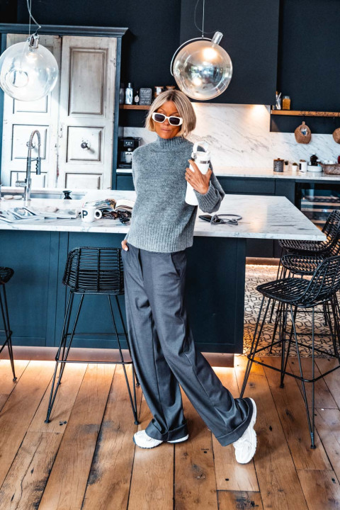 Nathalie porte une taille 34 pour son XS/S habituel et mesure 168cm
