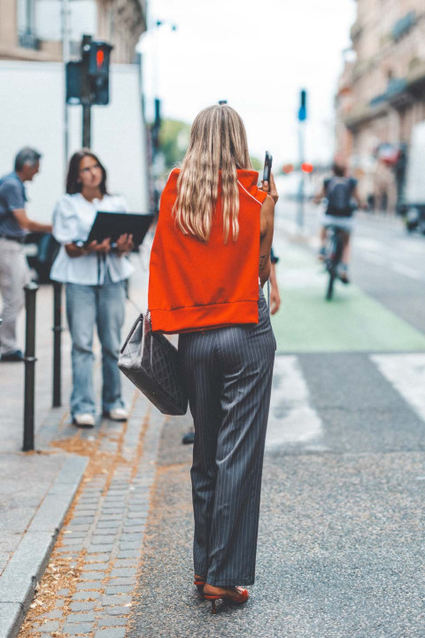 Nathalie porte une taille 34 pour son XS / S habituel et mesure 168 cm