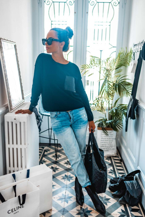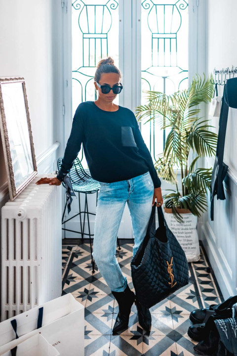 Notre mannequin porte une taille 1 pour son S/M habituel et mesure 170cm