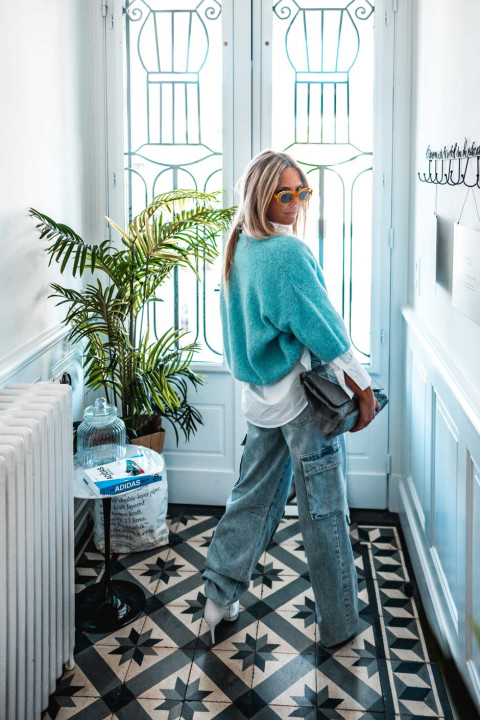 Notre mannequin porte une taille unique pour son XS / S habituel et mesure 1m70
