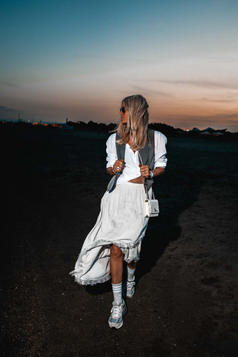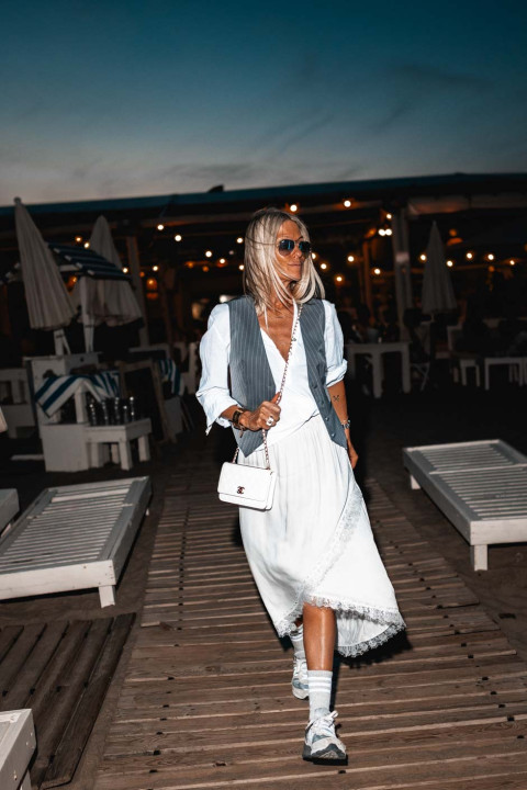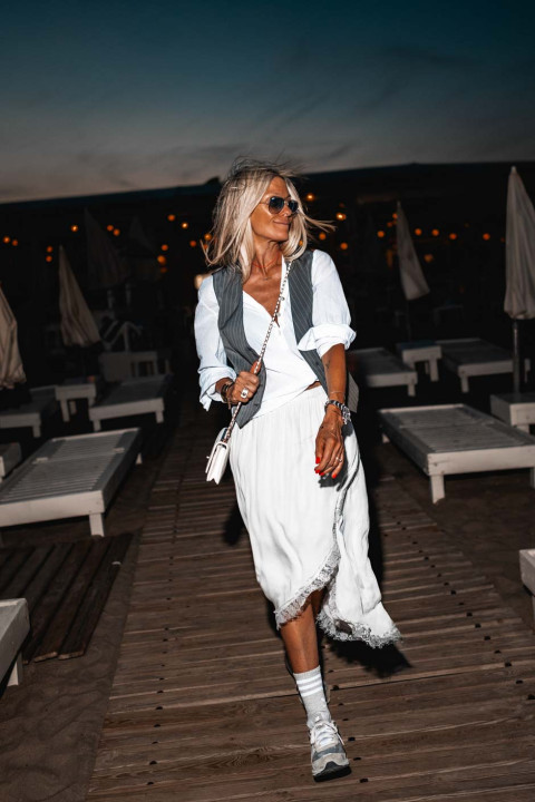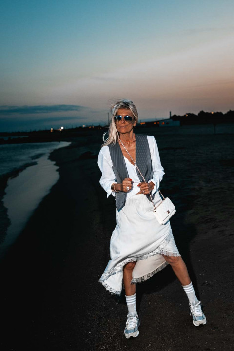 Nathalie porte une taille 1 pour son XS / S habituel et mesure 168 cm
