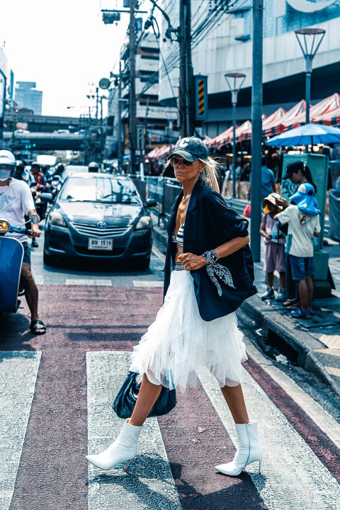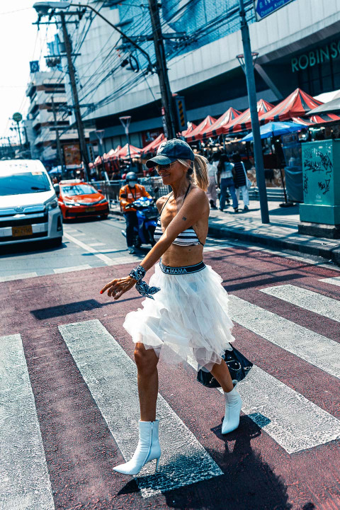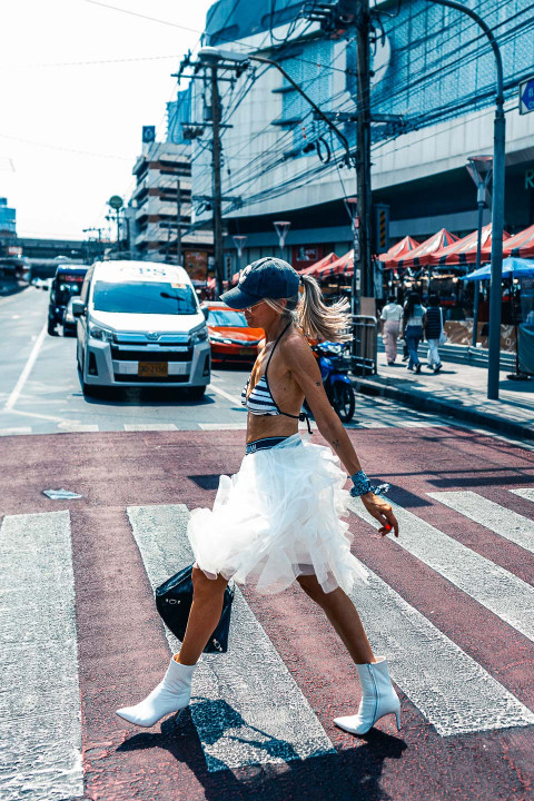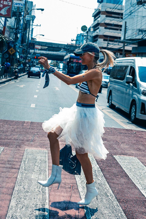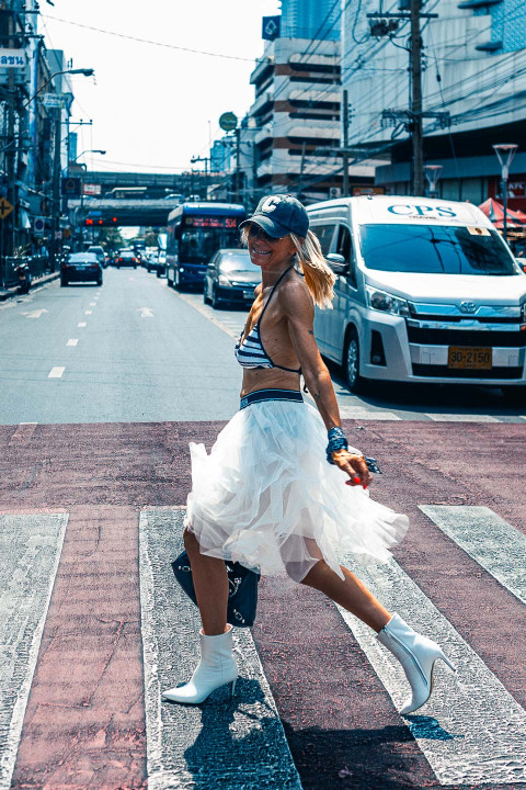 Nathalie porte une taille unique pour son XS/S habituel et mesure 168 cm