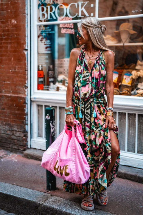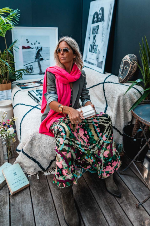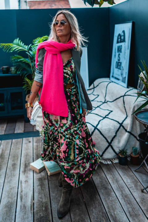 Nathalie porte une taille unique pour son XS / S habituel et mesure 1m68