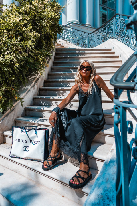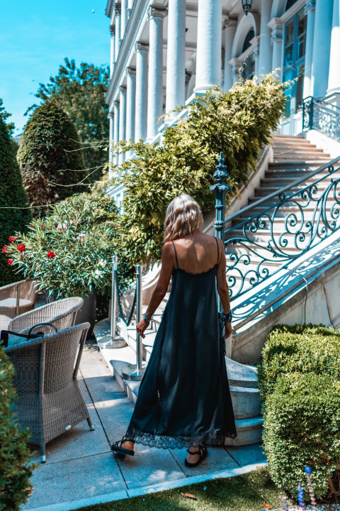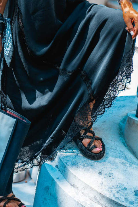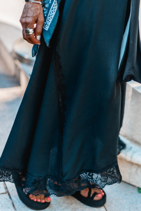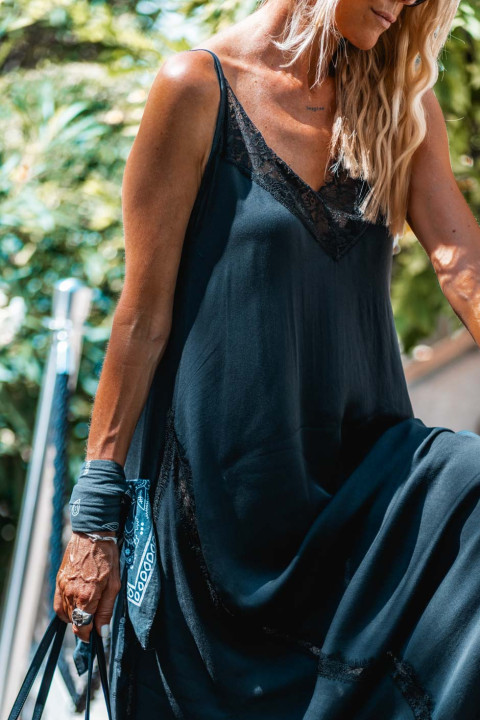 - Décolleté devant et dos en dentelle noir