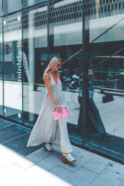 Nathalie porte une taille unique pour son XS / S habituel et mesure 168cm.