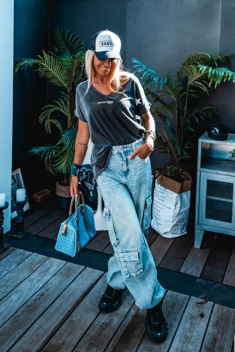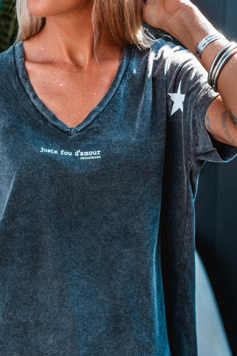 - Impression en blanc bas de col » Juste fou d’amour » et détail d’une étoile à l’aisselle