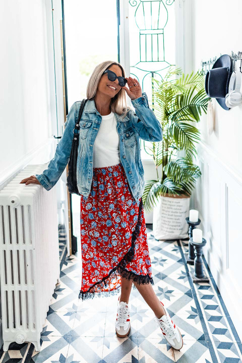 Notre mannequin porte une taille 1 pour son XS/S habituel et mesure 170 cm
