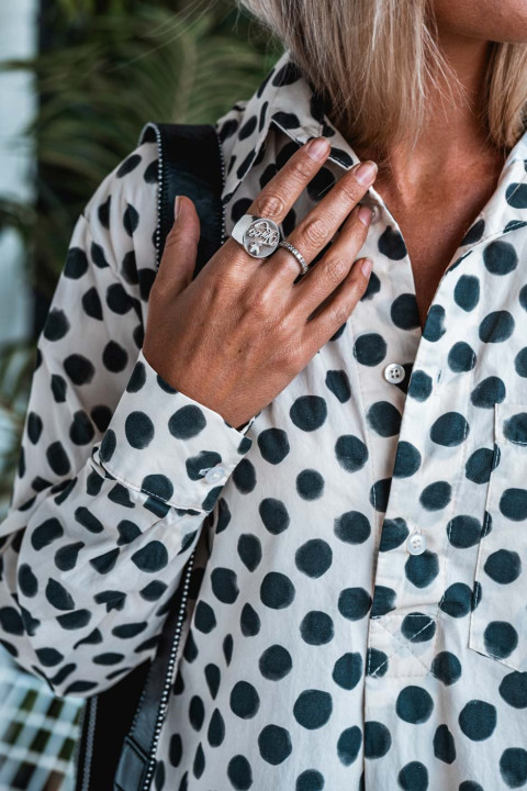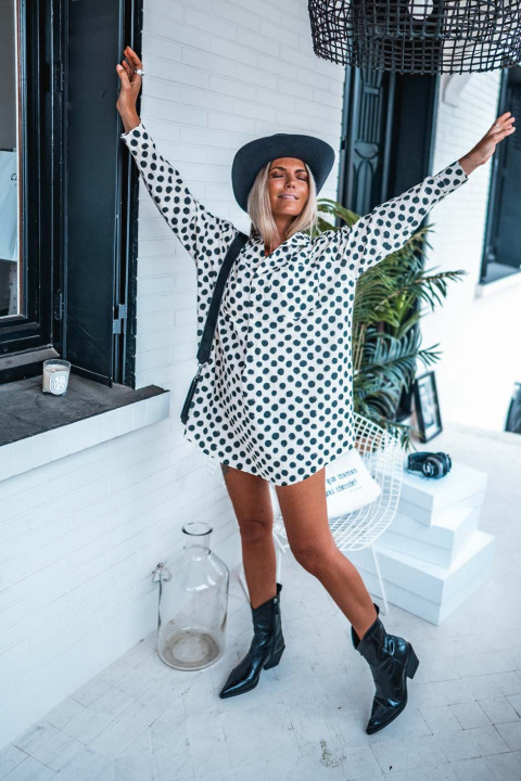 - Imprimé pois blanc / noir d’une modernité graphique