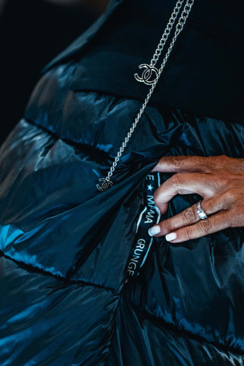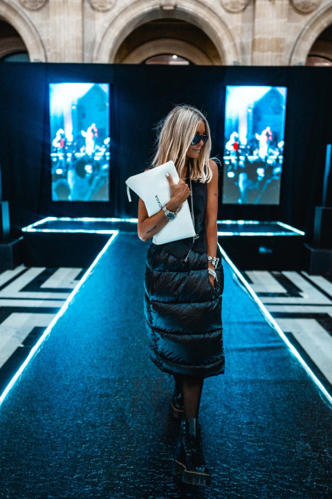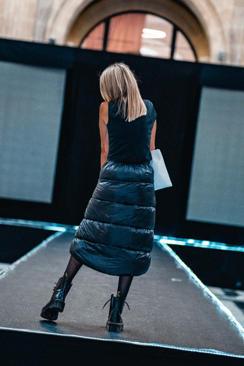 Nathalie porte une taille unique pour son XS/S habituel et mesure 168cm